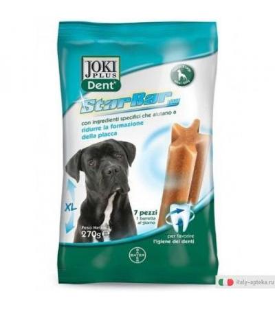 Joki Дент Стар Бар снэк приемлемым для того, чтобы помочь каждый день в хорошую гигиену полости рта вашей собаки. Благодаря специфические ингредиенты, которые содержит, как гексаметафосфат натрия, Joki Dent Star Bar помогает уменьшить образование зубного налета. Кроме того Joki Dent Star Bar, благодаря своей консистенции, способствует chew длительное и, благодаря особой форме звезды, способствует удалению остатков пищи с зубов.