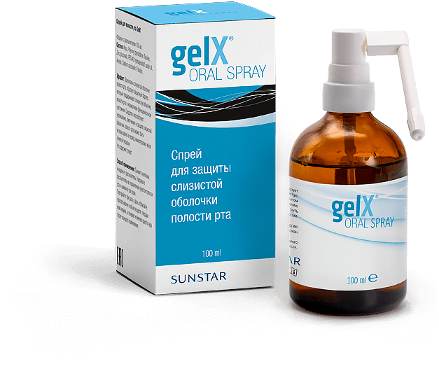 Спрей GelX® (Джеликс ®) способствует предупреждению проявлений орального мукозита (стоматита), который возможен при прохождении курса химиотерапии и/или лучевой терапии от производителя Sunstar (BMG Pharma) (Швейцария)