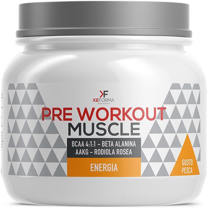PRE WORKOUT MUSCLE - это пищевая добавка на основе разветвленных аминокислот в соотношении 4:1:1, таурина, моногидрата креатина, кальция, необходимого для поддержания здоровья костей, витаминов B2 и B6, которые способствуют нормальному энергетическому обмену, розовой родиолы для тонизирующего действия и полезной при физической и умственной усталости; горький апельсин способствует нормальному метаболизму липидов.