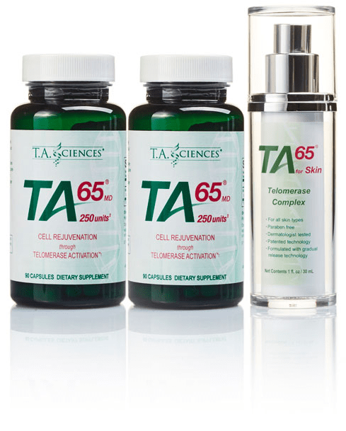 T.A. Sciences TA-65 Starter Kit (2 x TA-65MD 250IE 90 capsules + 1 x TA-65 for Skin 30ml)
