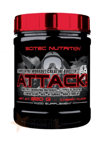 Scitec Attack! 2,0 320 г - это порошковая добавка перед тренировкой, состоящая из состава на основе таурина и креатина из 4 различных источников, особенно подходящих для увеличения мышечной силы и выносливости.