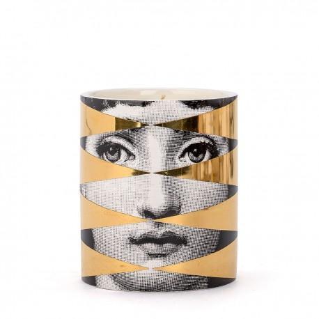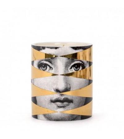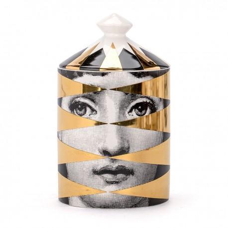 Свеча Fornasetti Gold Lozenges из разноцветного воска в фарфоре.