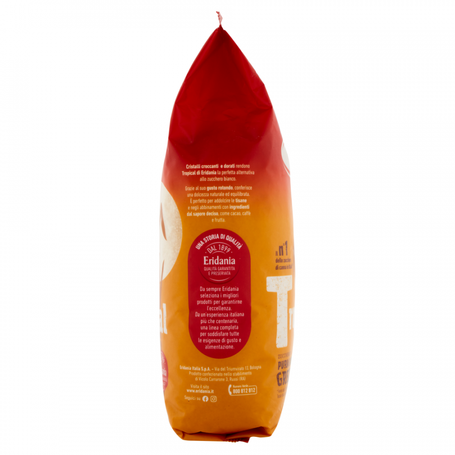 Хрустящие и золотистые кристаллы делают Tropical от Eridania идеальной альтернативой белому сахару. Благодаря округлому вкусу он придает натуральную сбалансированную сладость. Идеально подходит для подслащивания травяных чаев и в сочетании с сильнодействующими ароматизаторами, такими как какао, кофе и фрукты. Без глютена, подходит для веганской диеты.