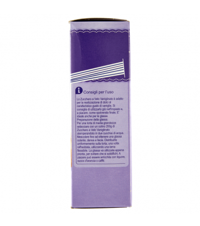Ванильная сахарная пудра подходит для приготовления десертов с характерным ванильным вкусом. Рекомендуется использовать ее уже в тесте и, по желанию, в качестве финальной посыпки. Она также идеально подходит для глазури. Приготовление глазури: Для пирога среднего размера просейте через сито 200 г ванильной сахарной пудры, растворив ее в двух столовых ложках воды. Мешайте, пока не получите жидкую, густую и гладкую глазурь. Равномерно распределите его по остывшему пирогу с помощью гибкого лезвия. Глазурь следует использовать, как только она будет готова, чтобы она не застыла. При желании ее можно дополнить ликером, апельсиновым соком или кофе.