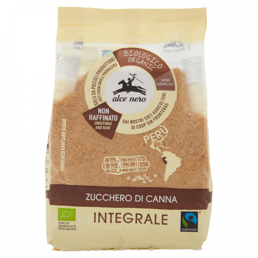 Органический цельный тростниковый сахар Alce Nero поступает из подходящих земель в Перу. Это цельнозерновой продукт, являющийся прямым результатом отжима сока из нерафинированного сахарного тростника. Сахарный тростник, известный под научным названием saccharum officinarum, хорошо растет в тропическом климате, может превышать три метра в высоту и жить до 10 лет. Фермеры - Cooperativas Sin Fronteras являются частью Cooperativas Sin Fronteras, международной организации, которая продвигает принципы качества, здоровья и устойчивости и в которую сегодня входят более 14 000 семей производителей в Латинской Америке. Выращивание сахарного тростника осуществляется вручную, без использования синтетической химической обработки и для удобрения используются исключительно органические удобрения (например, остатки тростника, оставленные в поле для питания почвы). Сбор тростника производится каждые 3 месяца только после того, как он созреет, и его отправляют на перерабатывающий завод. Каждый производитель, который обрабатывает несколько гектаров земли, несет ответственность за свой сахарный тростник на протяжении всего процесса, становясь, таким образом, ключевым игроком в цепочке поставок. Сырье измельчается с помощью мельницы для извлечения сока, который опускается в большие подогреваемые резервуары. После нескольких фильтрований и достижения нужной точки концентрации сахара сок помещается в охлаждающий резервуар и перемешивается, чтобы предотвратить его превращение в единый блок. Так сахар приобретает мучнистый вид.