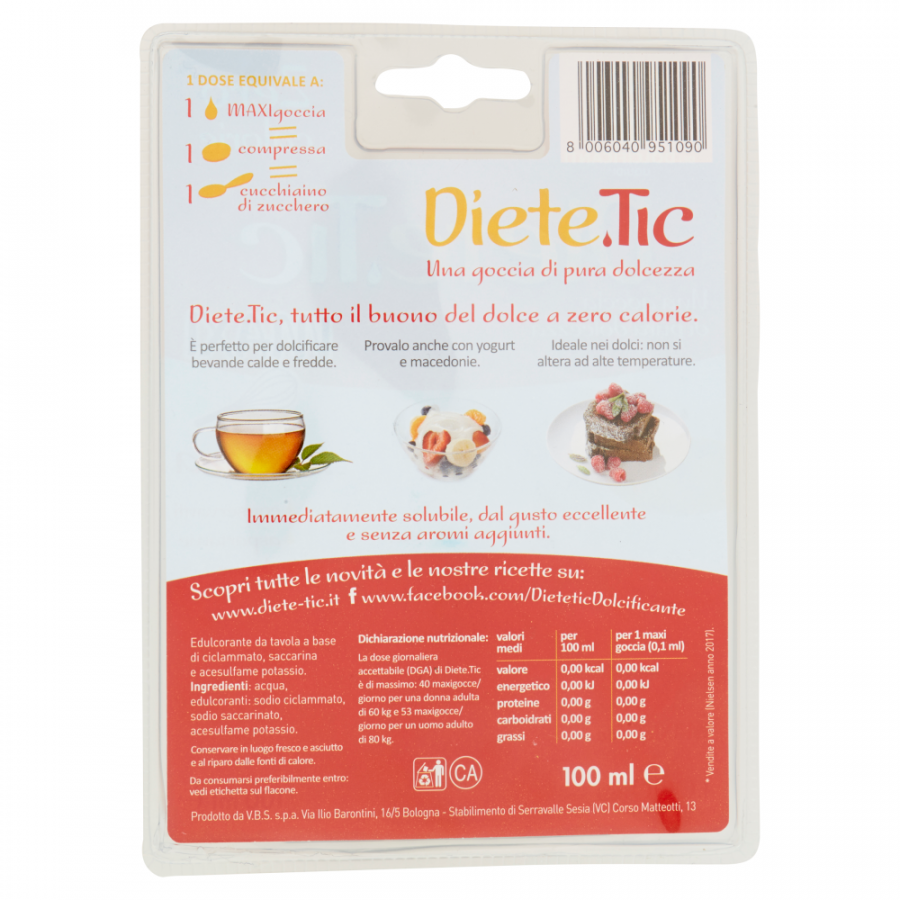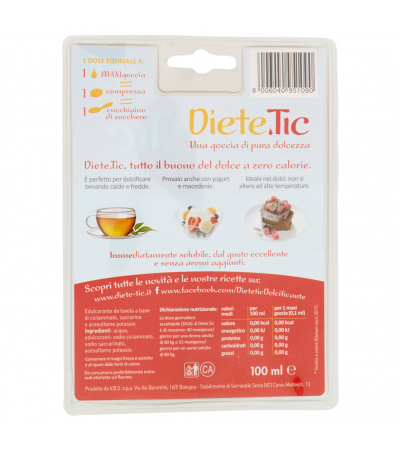 Diete.Tic - все достоинства десертов с нулевой калорийностью. Идеально подходит для подслащивания горячих и холодных напитков. Попробуйте его также с йогуртом и фруктовыми салатами. Идеально подходит для десертов: не меняется при высоких температурах. Мгновенно растворим, с прекрасным вкусом и без ароматизаторов.