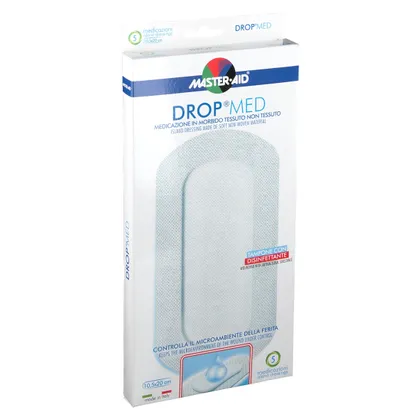 Master-Aid® Drop® Med - это прозрачная повязка из нетканого материала, снабженная впитывающей подушечкой с дезинфицирующим веществом (хлоргексидина диглюконат 0,5%). Гипоаллергенный клей, не содержащий растворителей и натурального латекса.