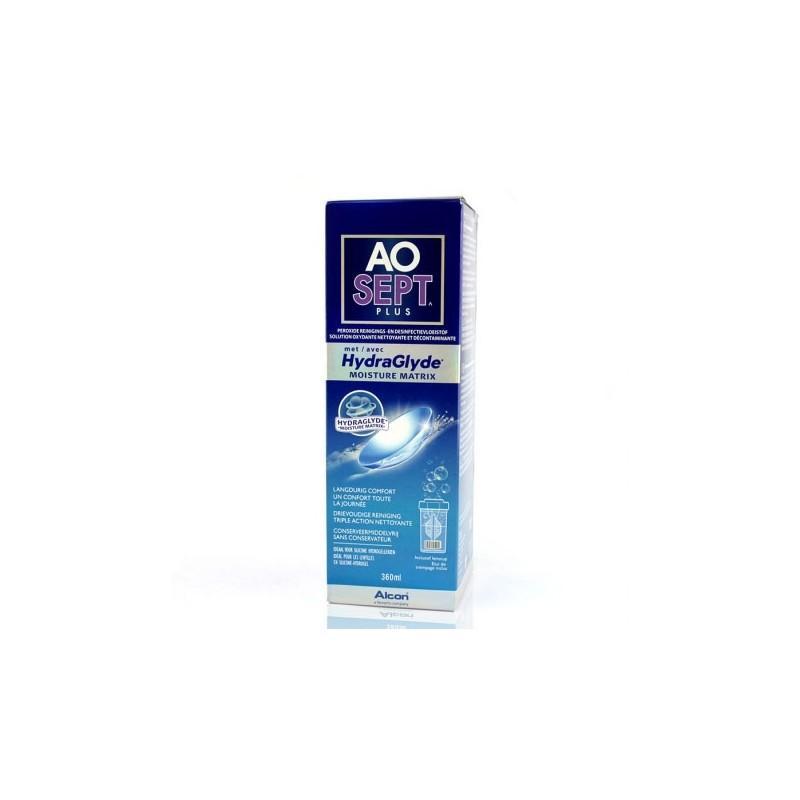 AOSept Plus с HydraGlyde - это раствор перекиси водорода, сочетающий в себе инновационную технологию Hydraglyde для гигиены и хранения контактных линз любого типа. Он производится и продается компанией Alcon, одной из крупнейших компаний в мире в области офтальмологической продукции и средств ухода за глазами. Он продается во флаконах по 360 миллилитров с контейнером для линз с нейтрализующим диском в каждой упаковке для использования вместе с жидкостью.