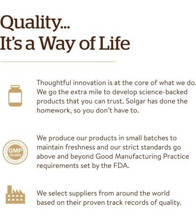 Для того, чтобы производить наиболее эффективную продукцию, компания Solgar использует цитратную форму магния, которая хорошо усваивается.